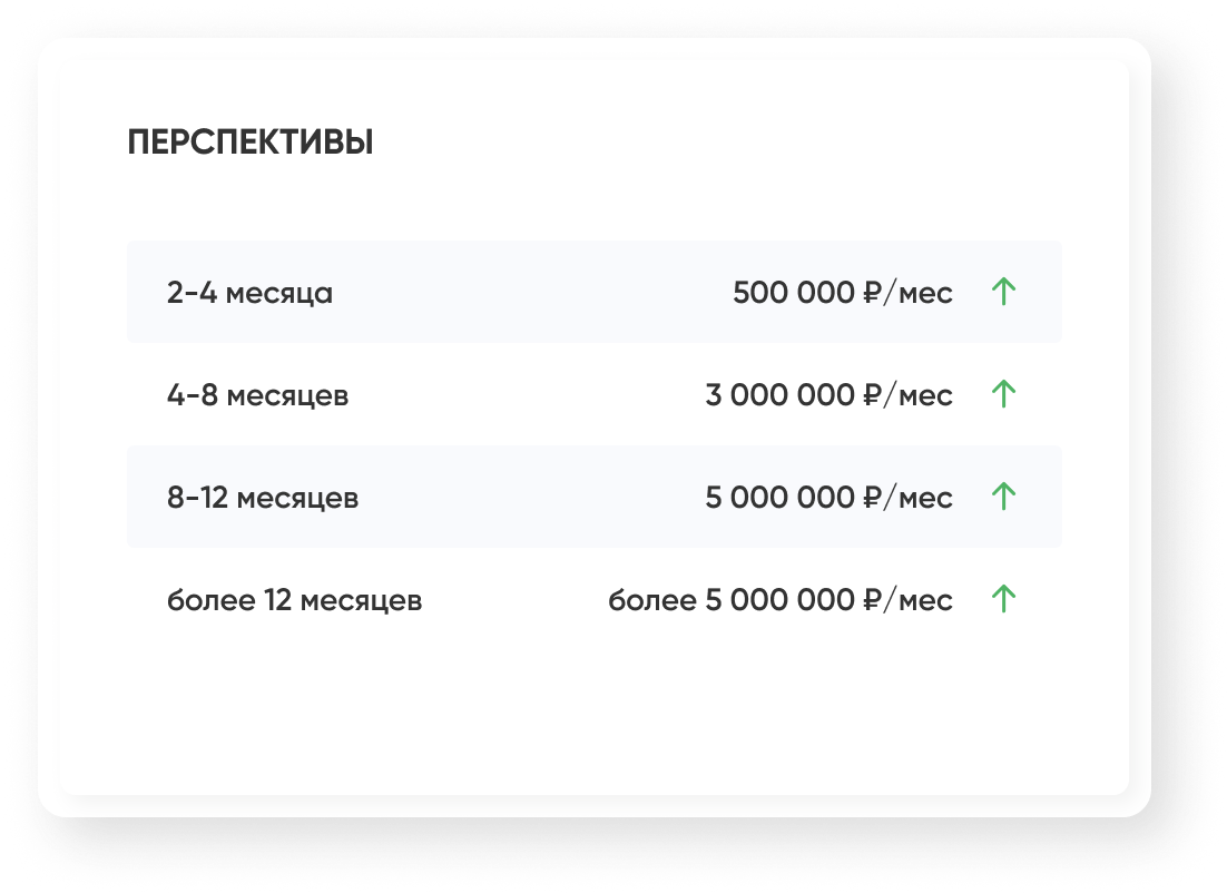 Вы однозначно видите перспективы роста и свой следующий шаг. Сделали 500 000 Р, теперь ставим задачу на 1 000 000 Р, 3 000 000 Р, потом 5 000 000 Р. Шаг за шагом становитесь сильнее вместе!